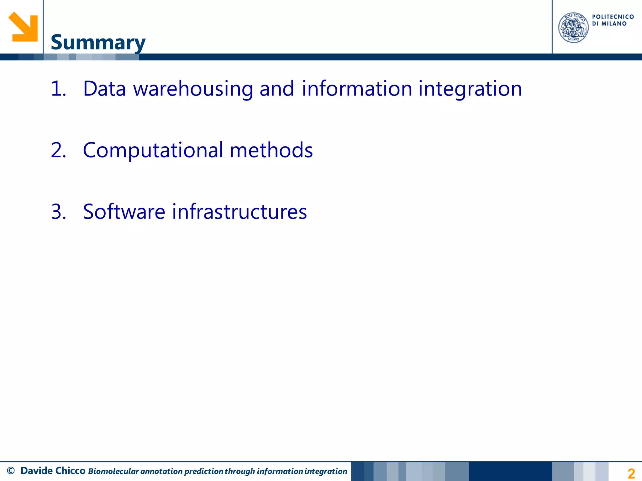 The document discusses the integration of biomolecular data using data warehousing and computational methods to improve annotation predictions for genes and proteins. It introduces a novel method called Semantic Improvement (sim), which outperforms traditional Singular Value Decomposition (SVD) techniques in predicting genomic annotations. The work emphasizes the need for efficient access to diverse biomolecular information to enhance biological research and knowledge discovery.