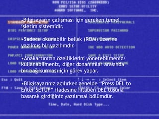•BIOS, PC’nin açılması için gerekli bir yapı.