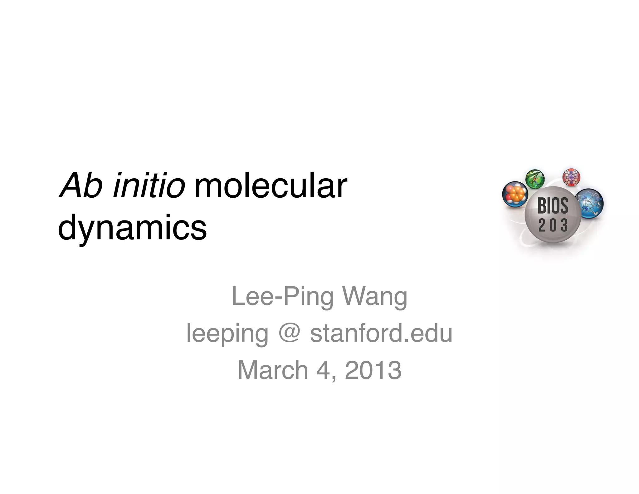 This document discusses ab initio molecular dynamics simulation methods. It provides an overview of different simulation techniques that range from fully quantum to mixed quantum-classical approaches. These methods allow researchers to study molecular phenomena with varying degrees of accuracy and system sizes. The document also outlines key concepts like the Schrodinger equation and Born-Oppenheimer approximation that are fundamental to these simulation approaches.