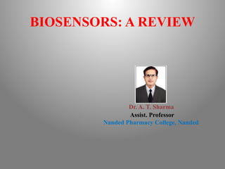The ppt includes an overview of biosensors and its preparations. The slides focus on the definition, advantages, disadvantages, working, construction, components of biosensors. It also includes types and applications of biosensors.