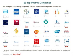 The document summarizes findings from the Pharmasphere 2016 study which analyzed Twitter engagement of major pharmaceutical companies regarding biosimilars. It found that: