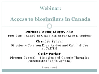 The document discusses the regulatory landscape for biosimilars in Canada, emphasizing their differences from generic drugs and the anticipated increase in their availability as patents expire. It outlines challenges related to interchangeability, patient perceptions, and the regulatory framework, including the need for comprehensive patient education on the safety and efficacy of biosimilars. The findings from a patient survey indicate varying levels of familiarity and confidence regarding biosimilars, with a significant need for transparent information and monitoring of outcomes.