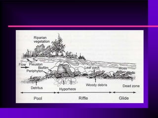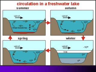 This document contains information about various biomes and ecosystems. It includes definitions and examples of different biomes such as tundra, taiga, temperate forest, grassland, desert, and marine ecosystems. Images and links are provided to illustrate characteristics of each biome. Key terms about aquatic ecosystems like plankton, nekton, benthos, dissolved oxygen, trophic status, and estuaries are also defined.