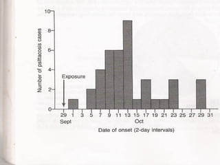 This document provides an overview of biostatistics and descriptive statistics. It defines key biostatistics concepts like data, distributions, and descriptive statistics. It explains how to display data through tables, graphs, and numerical summaries. These include frequency distribution tables, pie charts, bar diagrams, histograms, and more. Descriptive statistics are used to numerically summarize and describe data through measures of central tendency and dispersion.