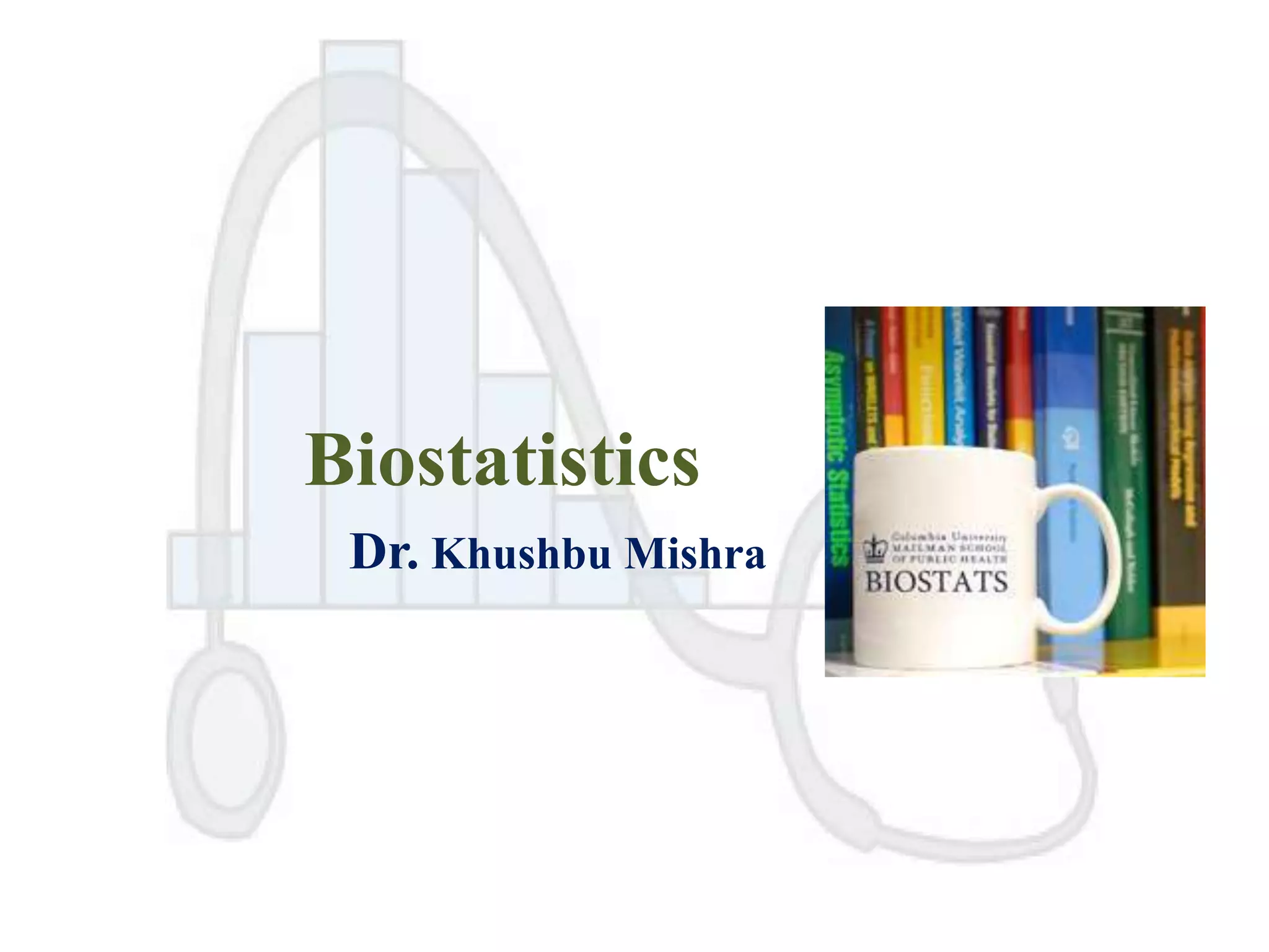 This document provides an overview of biostatistics. It defines biostatistics and discusses topics like data collection, presentation through tables and charts, measures of central tendency and dispersion, sampling, tests of significance, and applications of biostatistics in various medical fields. The document aims to introduce students to important biostatistical concepts and their use in research, clinical trials, epidemiology and other areas of medicine.