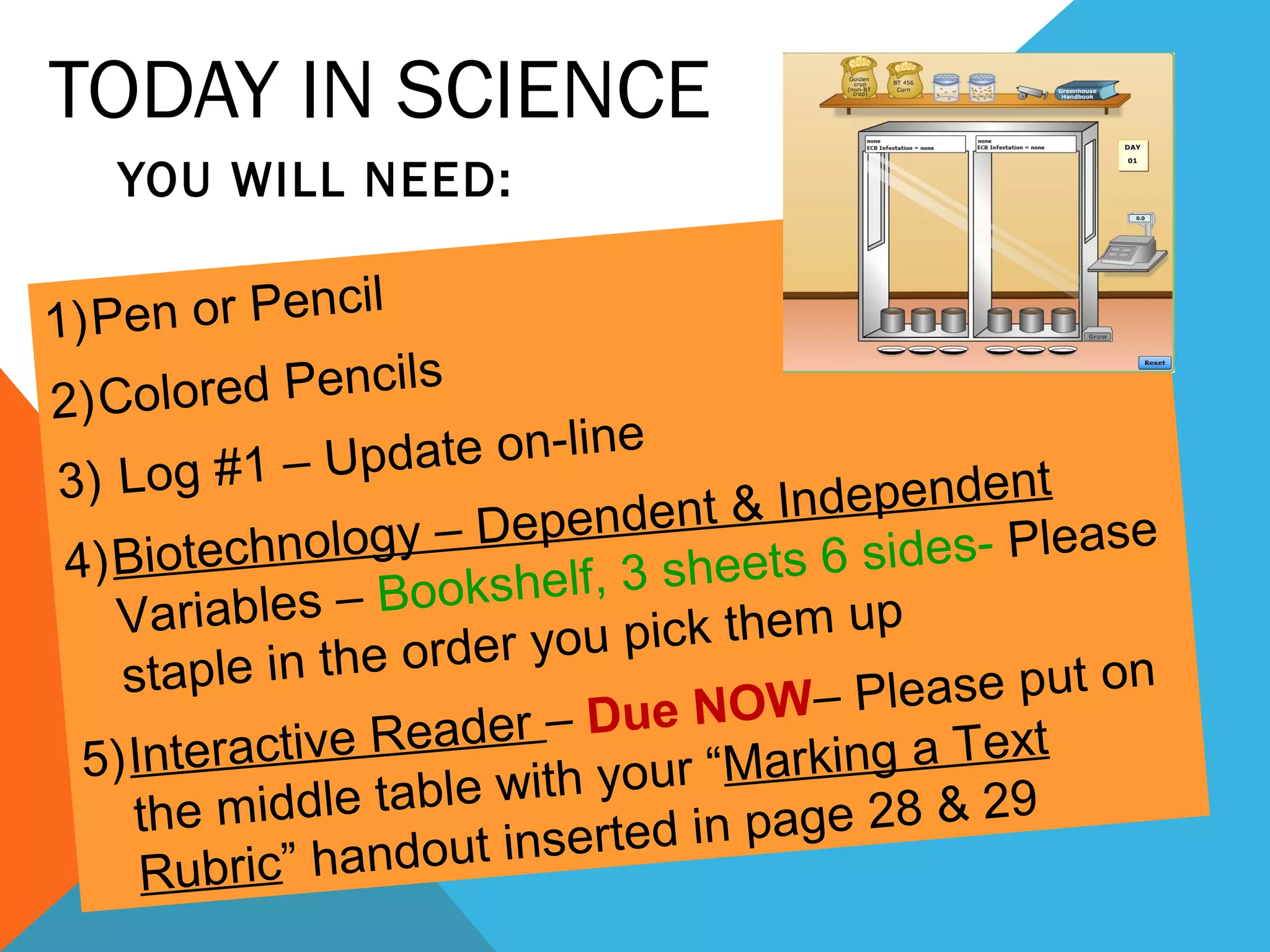 The document provides instructions for a science lab experiment on biotechnology. It explains that scientists use experiments to study cause-and-effect relationships between variables. The independent variable is the factor that is intentionally changed, the dependent variable is the responding factor being measured, and controlled variables are kept constant. Students will use an online virtual lab to study the relationship between European corn borer infestation levels (independent variable) and corn yields (dependent variable). They are instructed to collect data from experiments comparing non-Bt and Bt corn crops at different infestation levels and calculate average yields.