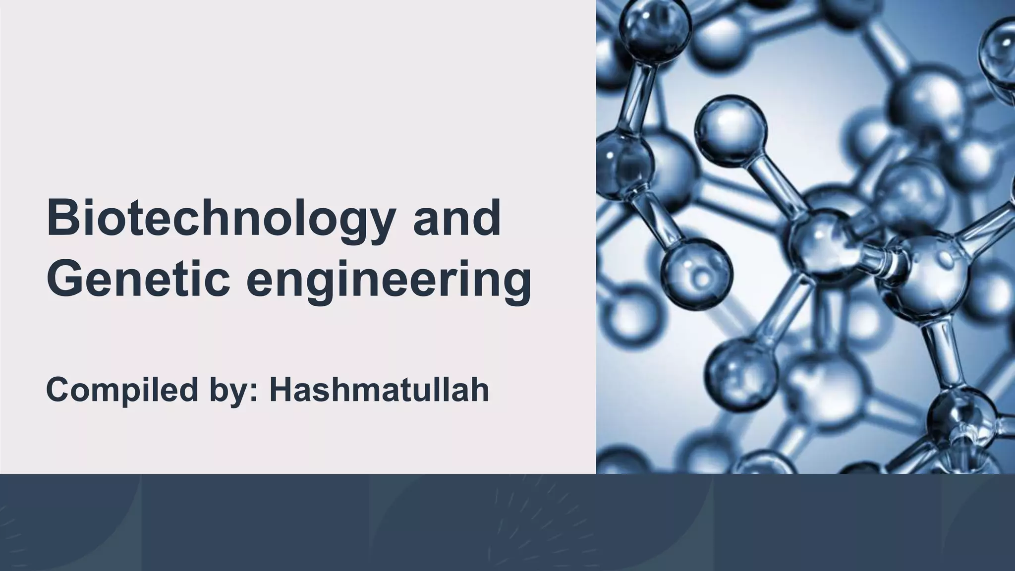 The document discusses various applications of biotechnology and genetic engineering, including the use of bacteria for food production, yeast in bread making, and pectinase in fruit juice extraction. It describes the benefits of biological washing powders and how lactose-free milk is produced using the enzyme lactase. Additionally, it explains the process and applications of genetic engineering, highlighting the production of human insulin in bacteria and genetically modified crops for pest resistance and enhanced nutrition.