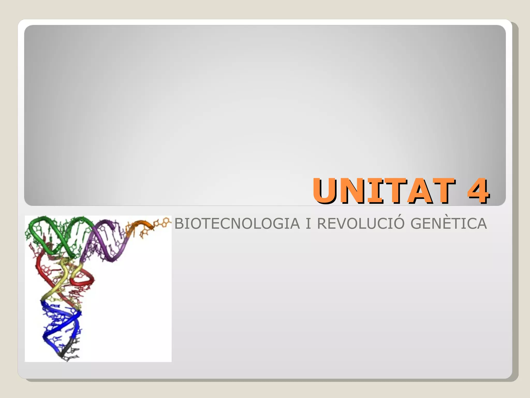 ÍNDEX BIOTECNOLOGIA ÀCIDSNUCLÈICS: ADN I ARN GENS I CODI GENÈTIC ADN RECOMBINANT EL PROJECTE GENOMA HUMÀ (PGH) TERAPIA GÈNICA COMPOSTOS TERAPÈUTICS D’ORIGEN BIOTECNOLÒGIC PLANTES I ALIMENTS TRANSGÈNICS BIOTECNOLOGIA I INDÚSTRIA CLONATGE REPRODUCTIU I TERAPÈUTIC REPRODUCCIÓ ASSISTIDA BIOTECNOLOGIA I MEDI AMBIENT BIOÈTICA