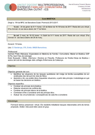 2a ed: 2 març de 16-18 hores i 4 d’abril de 9-11 hores de 2017. Resta del curs virtual. S’ha