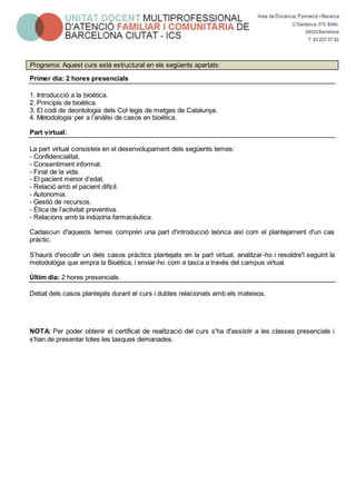 NOTA: Per poder obtenir el certificat de realització del curs s'ha d'assistir a les classes presencials i