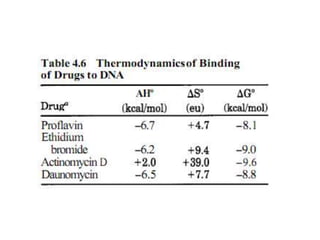 3. DNA intercalators such as proflavin and ethidium bromide which insert between DNA base pairs, unwinding the DNA helix through hydrophobic, electrostatic, and intercalative forces.
