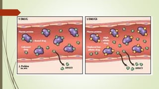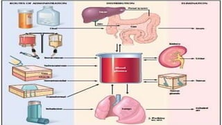 The document discusses biotransformation, which is the chemical alteration of drugs in the body. The body treats drugs as foreign substances and converts them into more polar, water soluble compounds through biotransformation so they can be excreted through the kidneys. Biotransformation occurs primarily in the liver and involves two phases - phase I reactions change the drug through processes like oxidation and phase II involves conjugating the drug to make it inactive so it can be excreted. Factors like other drugs, food, and an individual's characteristics can impact the biotransformation of drugs through inhibition or induction of the enzymes involved.