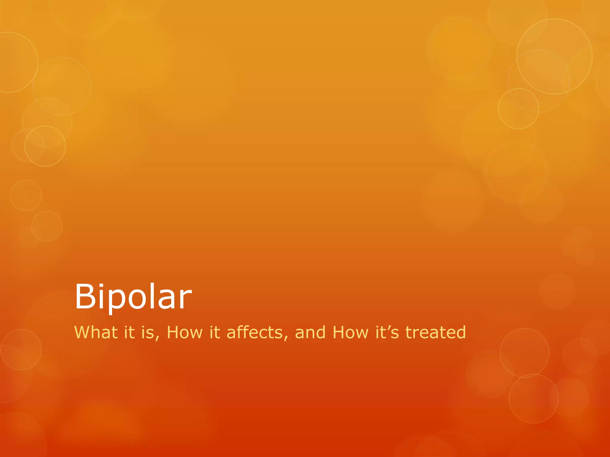 Bipolar disorder affects both adults and children by causing little sleep, racing thoughts, and possible addictions that strain relationships. It feels like one's mind is constantly changing modes. Bipolar is treated through talk therapy, mood stabilizing medications like Lamictal and lithium, and sometimes electroconvulsive therapy or support groups. Famous people who were diagnosed with bipolar disorder include Jim Carrey, Robin Williams, Edgar Allen Poe, and Vincent van Gogh.