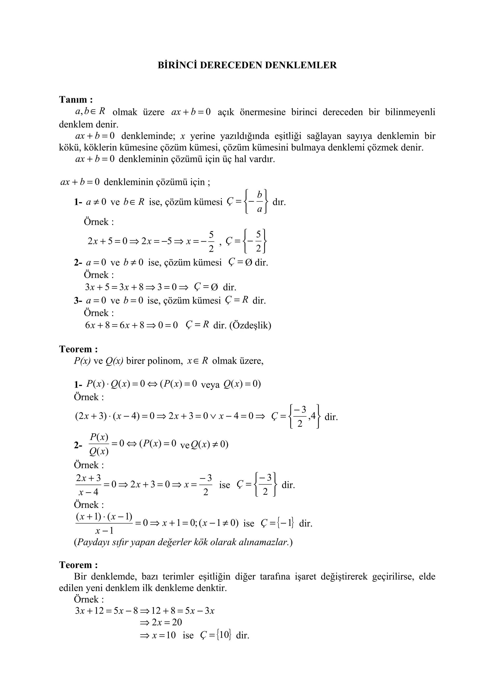 2- a = 0 ve b ≠ 0 ise, çözüm kümesi Ç = Ø dir.