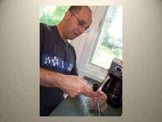 The document provides instructions for making coffee using different amounts of water and coffee scoops, followed by a birthday message wishing Nanny a happy birthday and saying they will drink coffee in her honor.