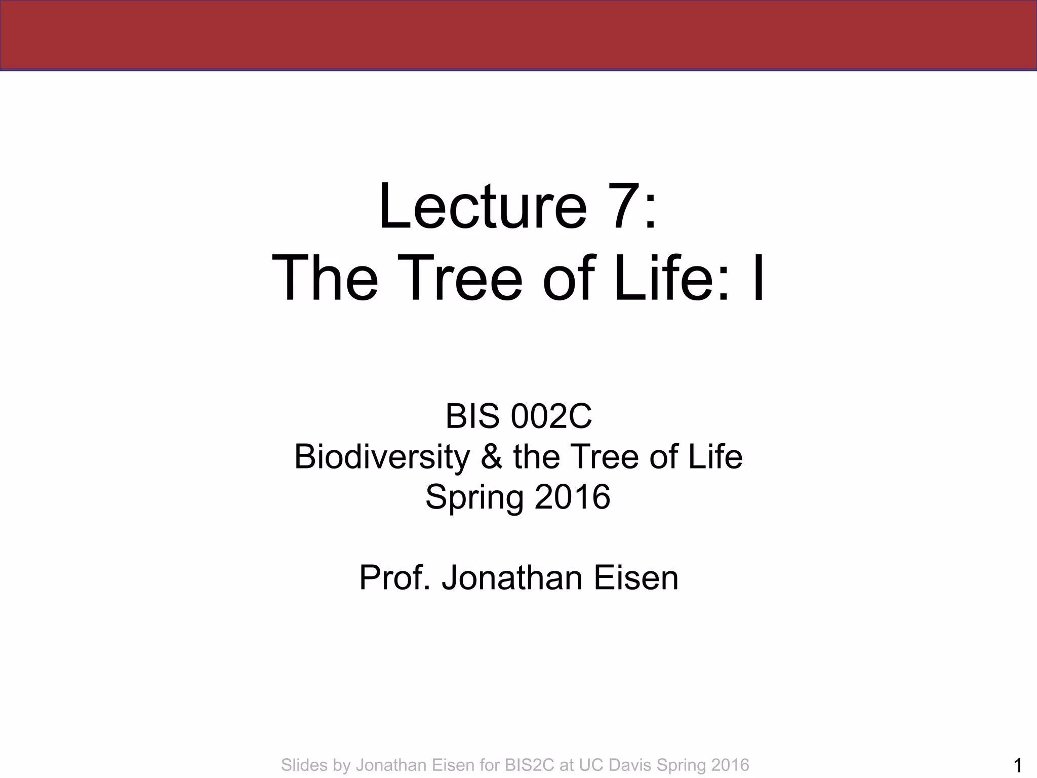 The document is a set of slides for a lecture on the Tree of Life. It discusses evidence that all life on Earth is related, including universal traits like the genetic code and cell structure. It covers historical models of the Tree of Life from Darwin to the modern understanding based on Carl Woese's work comparing rRNA sequences. Woese's RNA-based tree supported the division of life into Bacteria, Archaea, and Eukarya domains, reflecting a more complex early evolution than previously thought.