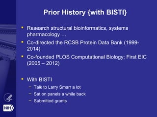 Philip E. Bourne discusses the evolving landscape of biomedical data science and the need for enhanced data infrastructure, training, and collaboration within the NIH and broader research community. Key observations include a lack of understanding of existing data usage, the necessity for a sustainability plan for data, and the importance of reproducibility in research. He envisions a 'digital enterprise' model that promotes interoperability and collaboration across academic medical centers to leverage big data for advancements in health.