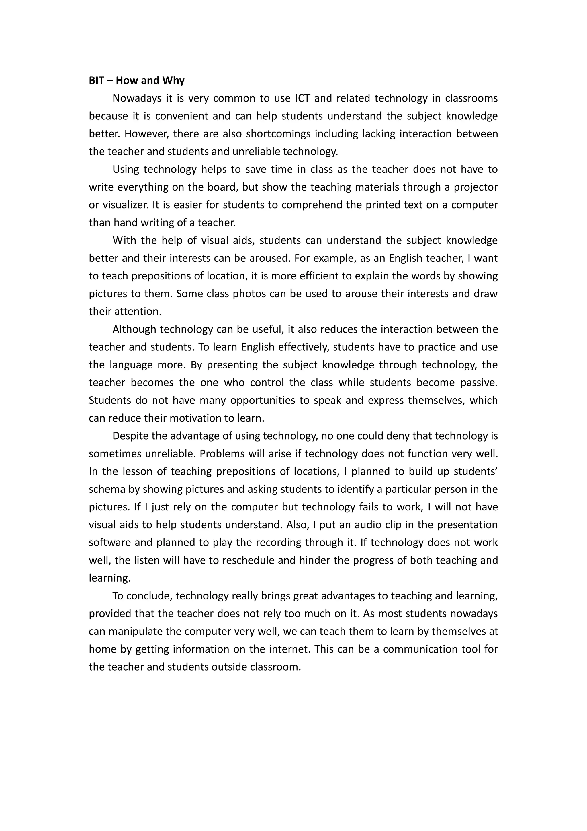 While technology can help students learn more efficiently by showing visual aids, it also reduces interaction between teachers and students. Using technology allows teachers to save time by not writing on boards, and students can better understand printed texts over handwriting. However, relying too heavily on technology makes students passive learners and limits opportunities to speak. Additionally, technology is sometimes unreliable, and technical issues can disrupt lessons. Therefore, technology is best used to supplement, not replace, classroom teaching and interaction.