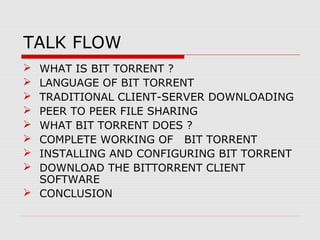 BitTorrent is a file-sharing protocol that allows for fast downloading of large files by utilizing a peer-to-peer network, thereby maximizing transfer speeds. It operates by having users download file pieces simultaneously from multiple sources, reducing dependency on central servers, and includes terms like 'seeder' and 'leecher' within its ecosystem. While BitTorrent is free and open-source, it has become associated with piracy due to the ease of accessing unlicensed content.