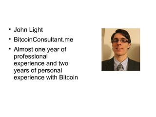 Bitcoin is a decentralized peer-to-peer payment network that allows for censorship-resistant transactions without middlemen. It uses cryptography to secure transactions recorded on a shared public ledger called the blockchain. Miners verify transactions and are rewarded with new bitcoins. The document argues that bitcoin is the most important invention of the 21st century as the first global decentralized currency allowing instant value transfer anywhere, with the potential to enable new technologies beyond payments.
