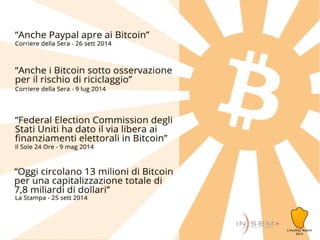 Questa presentazione ha come scopo introdurre i Bitcoin, e più in generale le criptovalute. Queste slide sono state presentate durante il Linux Day di Napoli edizione del 2014 organizzata dall'associazione NaLug e sponsorizzata dalla Insem S.p.A.