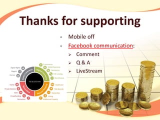Tài liệu trình bày một hội thảo về Bitcoin và Blockchain, bao gồm các thông tin liên quan đến tiền điện tử, hợp đồng thông minh, giao dịch tiền mã hóa và các vấn đề pháp lý. Nó nêu rõ sự phát triển của Bitcoin từ các khái niệm ban đầu đến quá trình tạo ra và giao dịch qua mạng lưới phi tập trung. Ngoài ra, tài liệu cũng đề cập đến các vấn đề về lừa đảo trong ICO và yếu tố quan trọng trong việc khai thác Bitcoin.