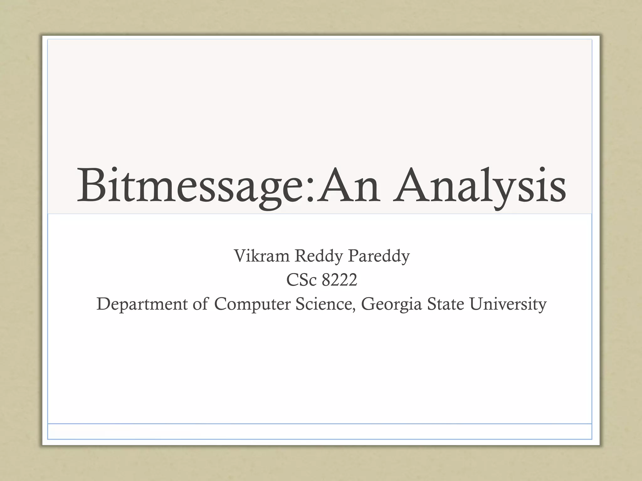 This document summarizes Bitmessage, an anonymous and encrypted messaging protocol. Some key points: