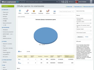 Документ описывает систему управления сайтом 1С-Битрикс, предлагающую инструменты для управления интернет-проектами, включая корпоративные сайты, интернет-магазины и социальные сети. Платформа включает системы контент-менеджмента, интеграцию с 1С и CRM, а также поддержку множества пользователей с индивидуальными правами доступа. Важные функции включают управление контентом, SEO-оптимизацию, аналитику, а также рекламные и маркетинговые инструменты для успешного ведения бизнеса в интернете.