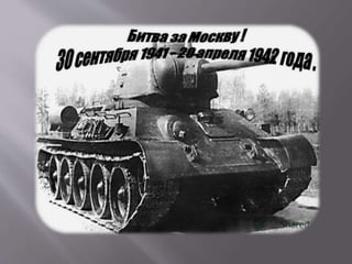 Документ описывает значимость битвы под Москвой во время Второй мировой войны, где советские войска нанесли первое серьезное поражение гитлеровской армии. Контрнаступление началось 5 декабря 1941 года и окончилось разгромом немецких войск. Битва стала символом героизма и стойкости советского народа, увековечена памятниками и памятными званиями, такими как 'город-герой'.