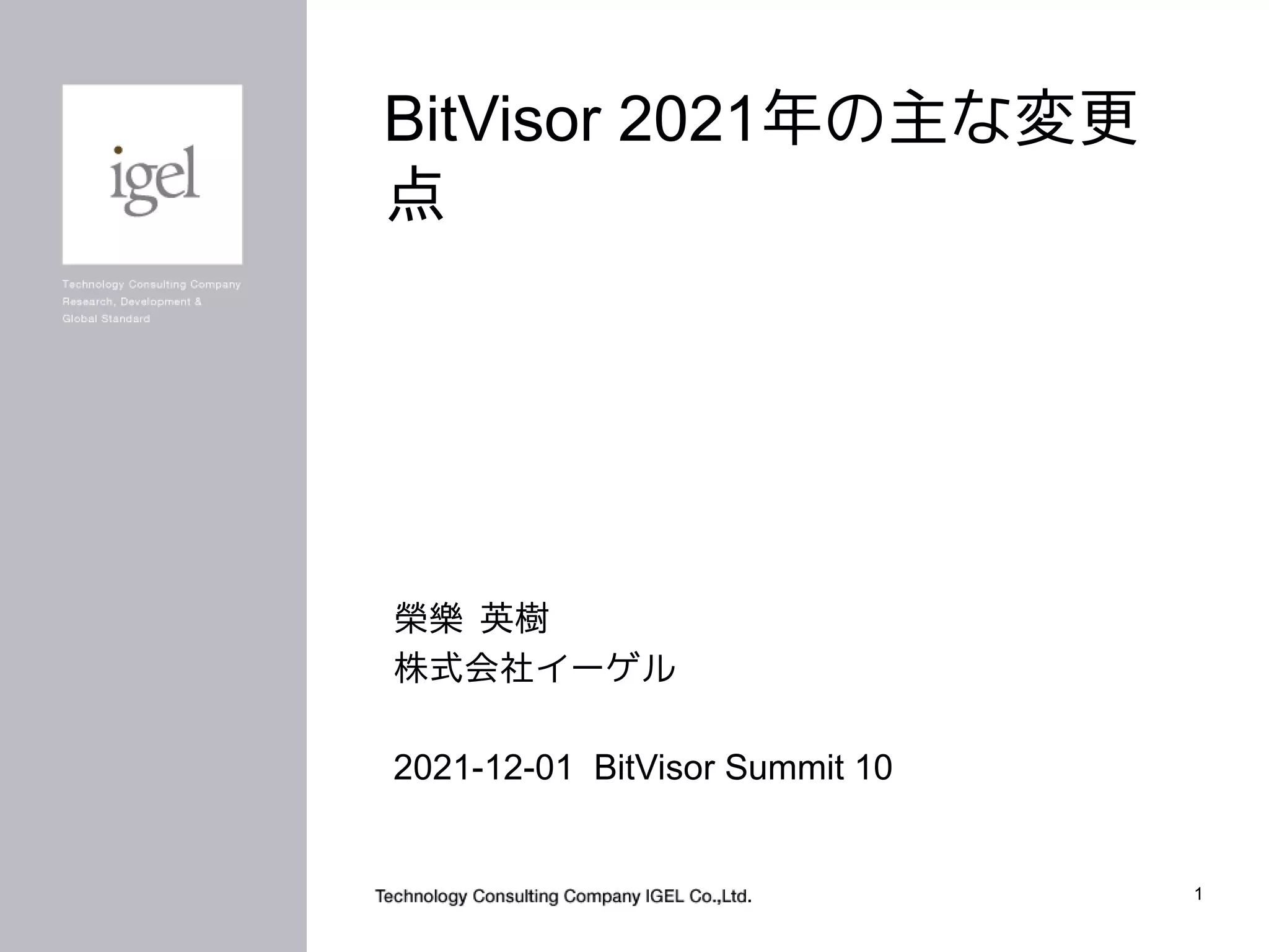 2021年は、大規模PC環境向けOS配信管理ソリューションの開発に伴い、BitVisorに含まれていた細かい問題が修正されました。変更内容には、10コア20スレッド対応、ヒープ割り当て改善などが含まれます。これらの変更内容について紹介します。