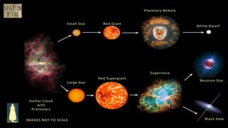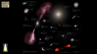 The document discusses the formation and characteristics of black holes and neutron stars, covering their mass limits, types, and events like gravitational waves. It explains concepts such as the Chandrasekhar limit, event horizons, and the structure of black holes, including both rotating and non-rotating types. Additionally, it touches on the presence of black holes in galaxies, their evolution, and the ongoing research efforts to observe their effects, including Hawking radiation and the merging of black holes.