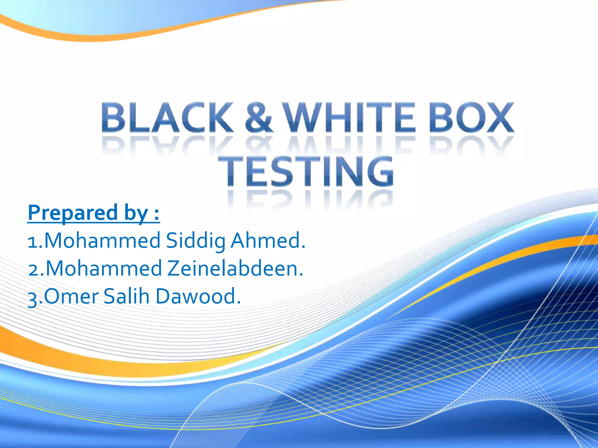 The document discusses various black-box testing techniques. It introduces testing, verification, and validation. It then describes black-box and white-box testing. Various types of testing like unit, integration, functional, system, acceptance, regression, and beta testing are explained. Strategies for writing test cases like equivalence partitioning and boundary value analysis are provided. The document emphasizes the importance of planning testing early in the development process.