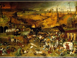 The document provides guidance for a research assessment on The Black Death plague in Europe during the 14th century. It outlines topics to research such as causes of the plague, symptoms and treatments, immediate and long-term impacts on society, and the role of religion. Students are instructed to gather at least five visual sources with explanations to include in their report. Key events related to the plague, such as its arrival in English ports in 1348, and outbreaks through the late 1300s, are also listed.