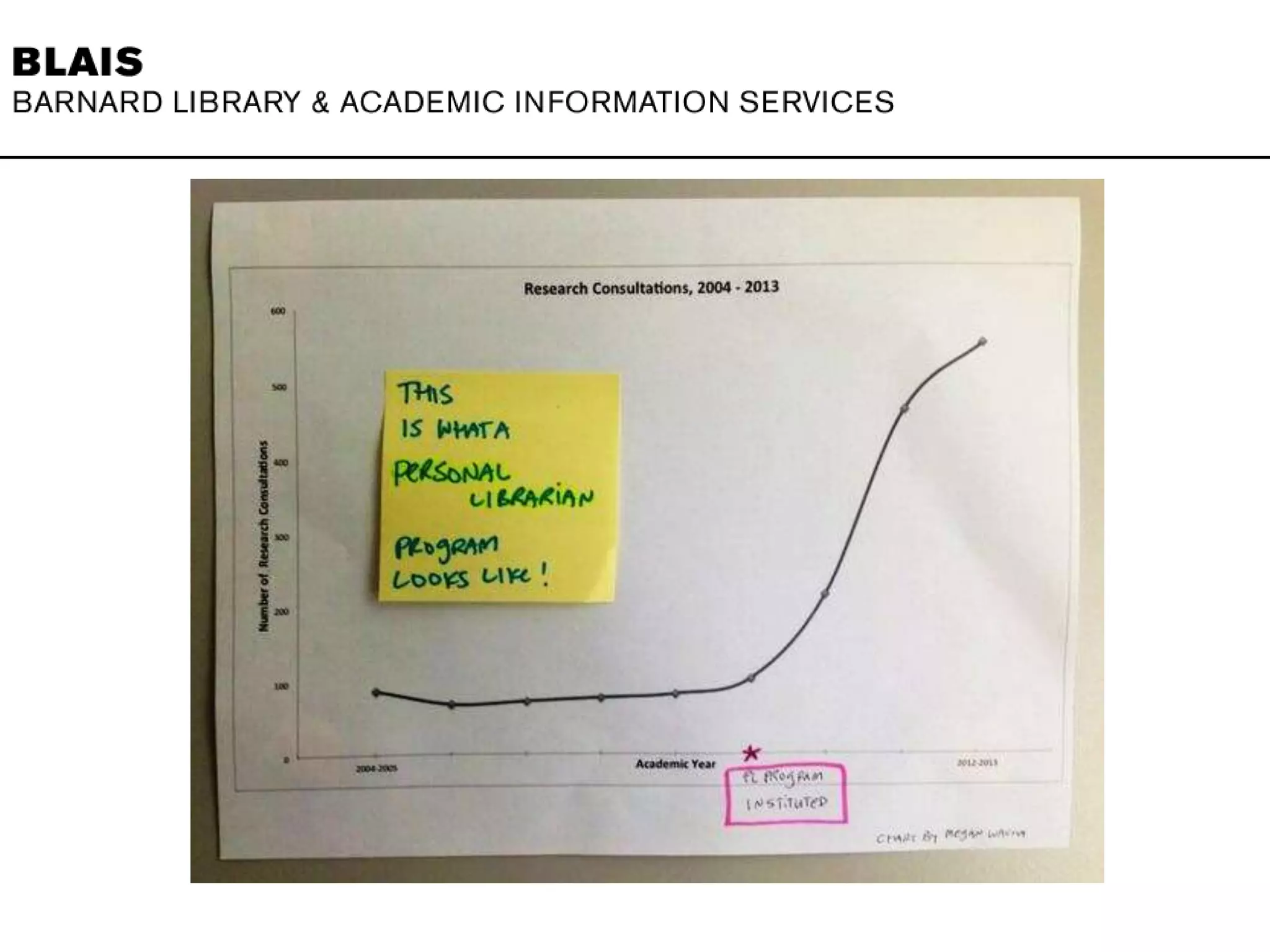 The document provides details on various research consultation topics, library instruction activities, staff news and accomplishments, collections additions, exhibits, presentations, publications, events, and professional contributions at Barnard College's library in 2013. Key details include over 2,400 students reached through instruction, the hiring of new staff and promotion of existing staff, additions of over 5,500 items to collections including zines and archives materials, and staff participating in conferences, publishing works, and taking on leadership roles in professional organizations.