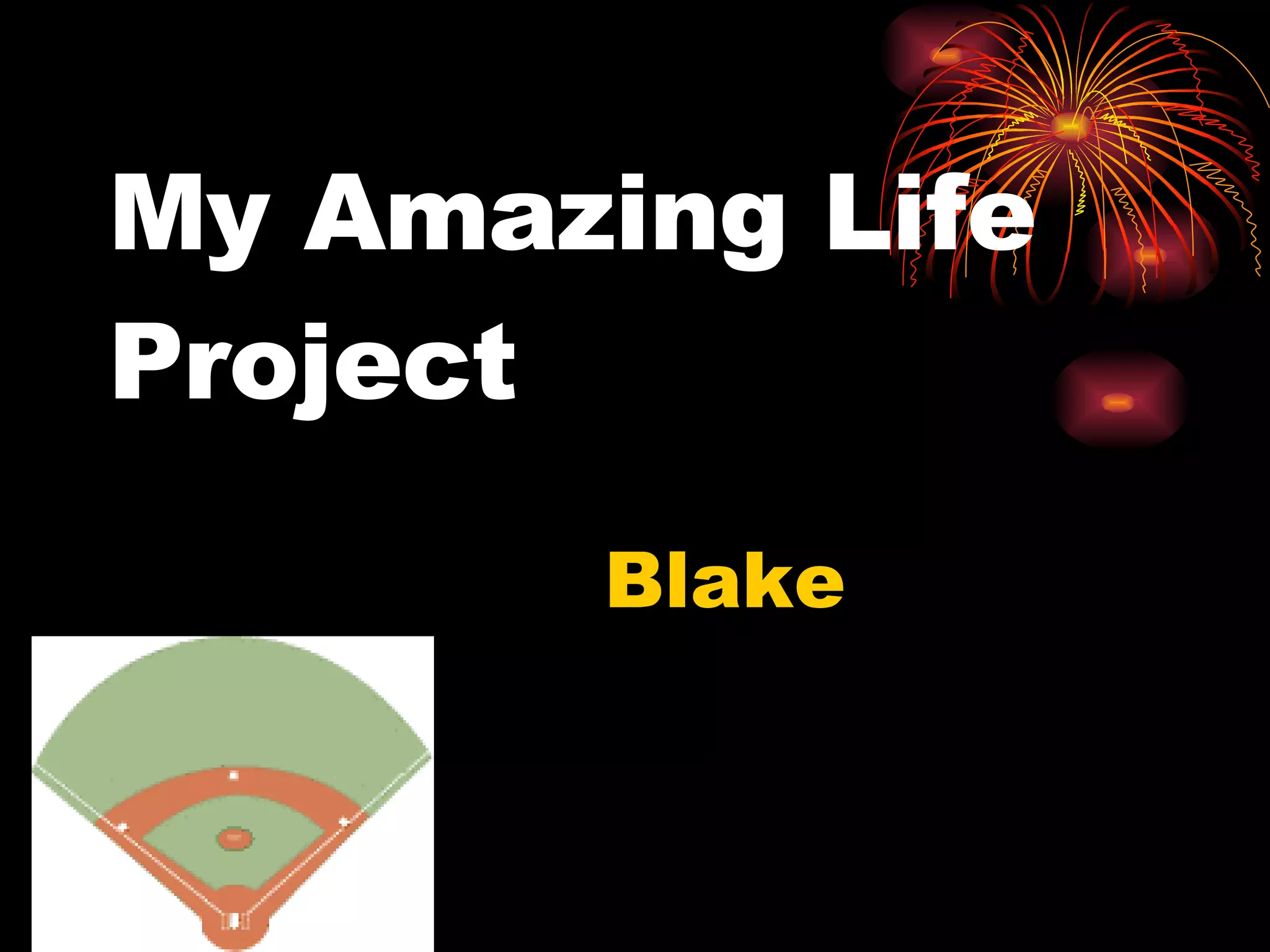 The document provides autobiographical information about Blake, including his birthday, age, where he is from, and hobbies. It describes a typical school day for Blake and things he enjoys like baseball, basketball, and football. The document also outlines Blake's participation in a food drive to help stock a local pantry and his wish to help feed the hungry and give shelter to the poor.