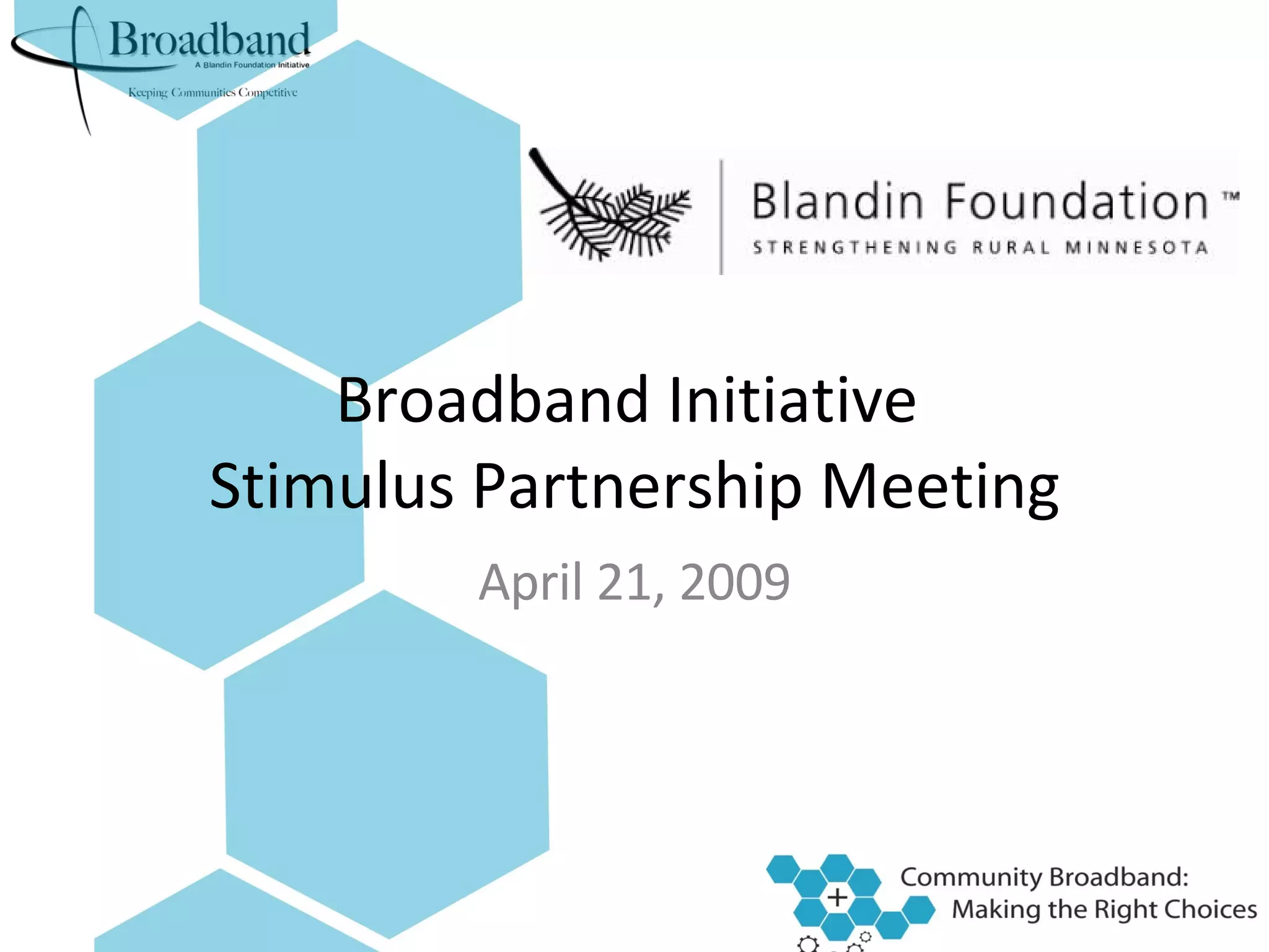The Blandin Broadband Initiative meeting on April 21, 2009, aimed to enhance Minnesota's telecommunications network and stimulate investment in rural broadband. Key federal funding programs were discussed, including $4.7 billion from the Department of Commerce and $2.5 billion from the USDA for various broadband initiatives. The meeting emphasized the need for collaboration and capacity building to effectively deploy broadband resources in underserved rural areas.