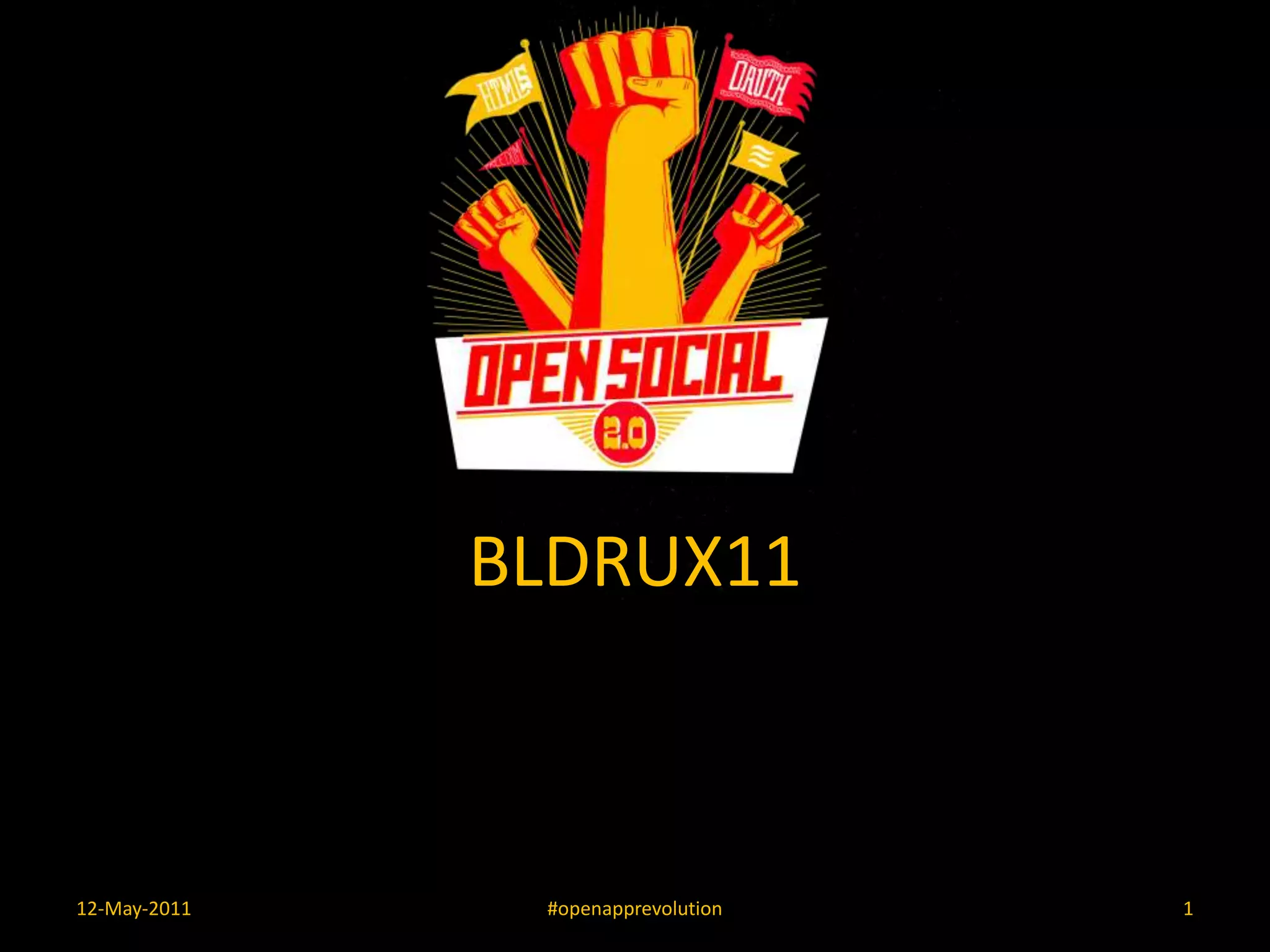 The document discusses the OpenApp Revolution and the evolution of OpenSocial as a framework for building social applications. Key features include a robust programming model, the ability to leverage activity streams, and lessons learned in developing applications within social containers. It highlights the importance of integrating user data, managing branding, and utilizing platform capabilities for an immersive user experience.