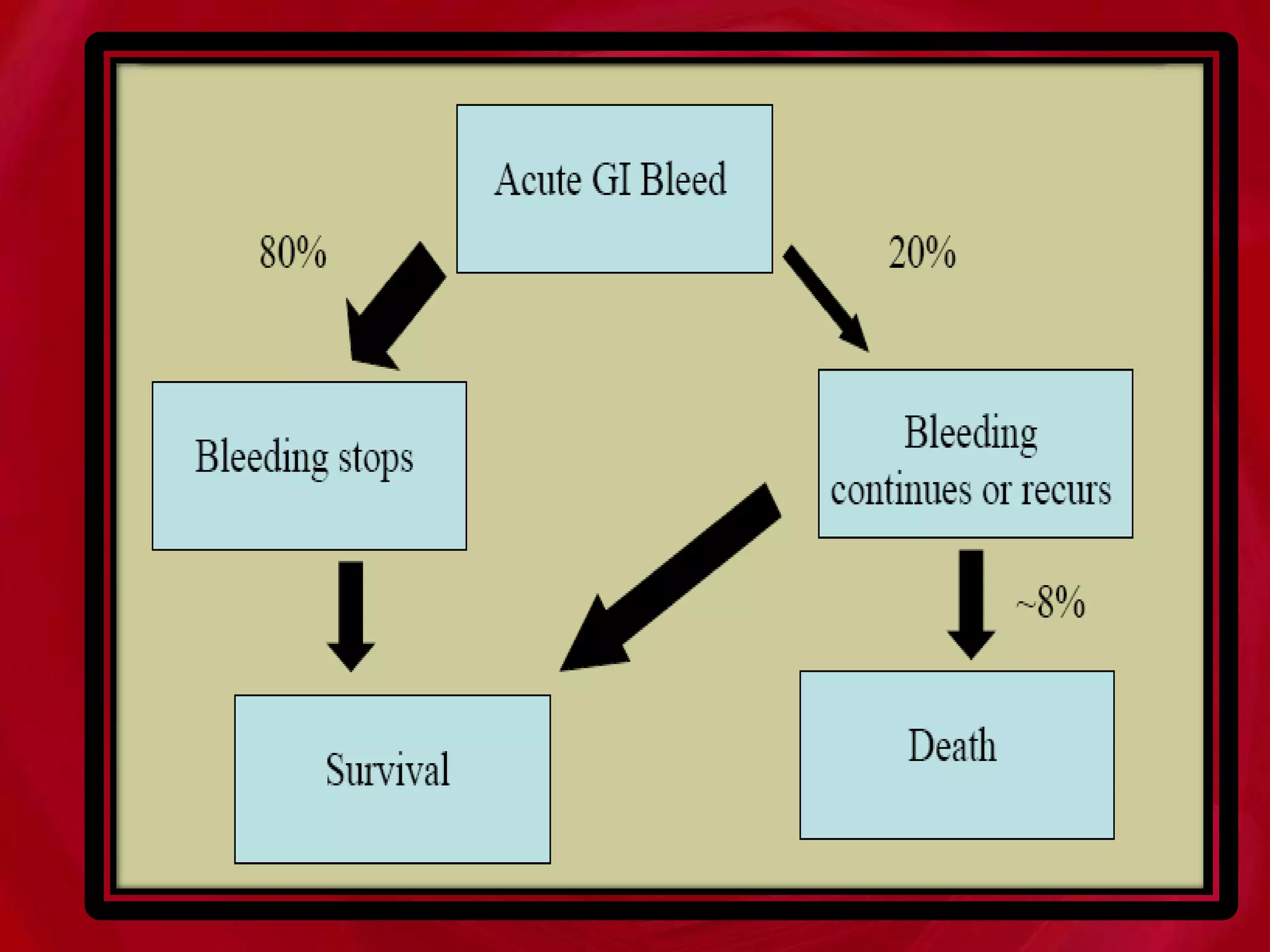 - The approach to a patient with GI bleeding involves stabilizing their hemodynamic status, identifying the source of bleeding, stopping active bleeding, treating the underlying cause, and preventing recurrent