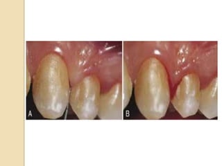 Bleeding on probing is an early sign of gingival inflammation and is commonly used to assess periodontal disease status. It occurs when increased crevicular fluid and breakdown of gingival tissues due to inflammation allows blood vessels to rupture upon gentle probing. Local factors like poor oral hygiene and systemic conditions like vitamin deficiencies or coagulation disorders can contribute to abnormal gingival bleeding. The bleeding point index is used to evaluate gingival inflammation by recording the number of bleeding sites after probing specific areas in the mouth.