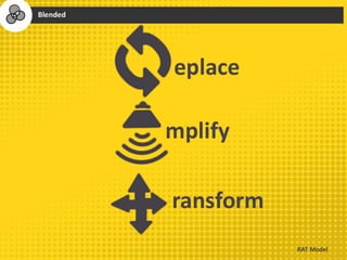 The document discusses the role of educational technology (ed-tech) in replacing, augmenting, and transforming traditional teaching practices. It emphasizes how technology can support course management, enhance learning outcomes, and foster collaboration while maintaining the essence of established pedagogies. Additionally, it highlights the importance of integrating digital capabilities into a restructured educational framework.