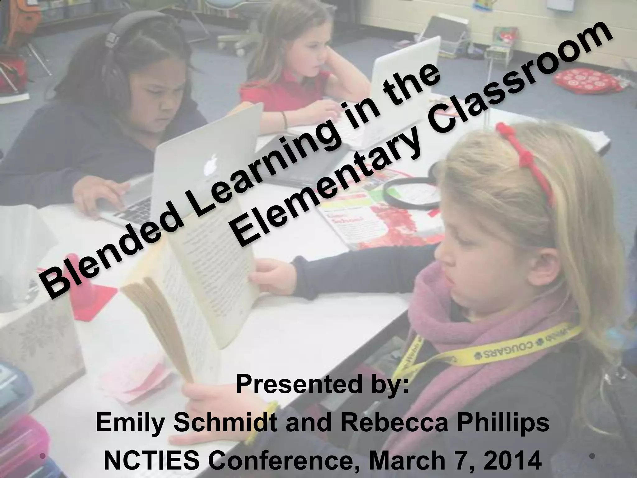 Emily Schmidt and Rebecca Phillips presented on blended learning at an education conference. They defined blended learning as combining small group teacher instruction with personalized computer/tablet instruction. They explained the benefits of blended learning and what is needed for a successful blended learning classroom, including technology, support, and an open mindset. They described what a blended learning elementary classroom looks like, using a station rotation model. They shared their experiences implementing blended learning and tips for getting started, such as using free resources. Student quotes showed enthusiasm for the technology used in their blended learning classroom to support math, reading, and other subjects.