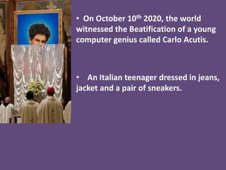Carlos Acutis, an Italian teenager and the first millennial to be beatified, was known for his devotion to the Eucharist and passion for technology, creating the website 'Eucharistic Miracles of the World'. Despite his brief life ending at age 15 from leukemia, he inspired many through his faith, charity work, and advocacy for marginalized individuals. His legacy continues as Pope Francis cites him as a role model for young people navigating modern challenges.