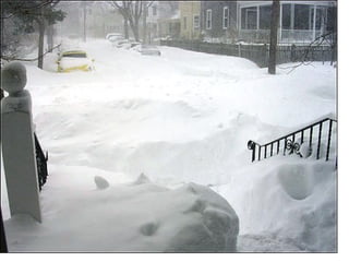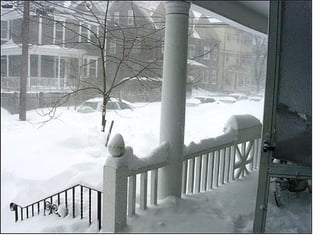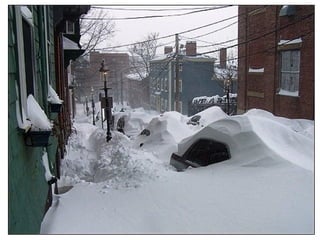 The snow is 3 feet deep and covering park benches. Notes have been placed on top of the backs of benches to indicate how deep the snow is. The benches are buried under 3 feet of snow.