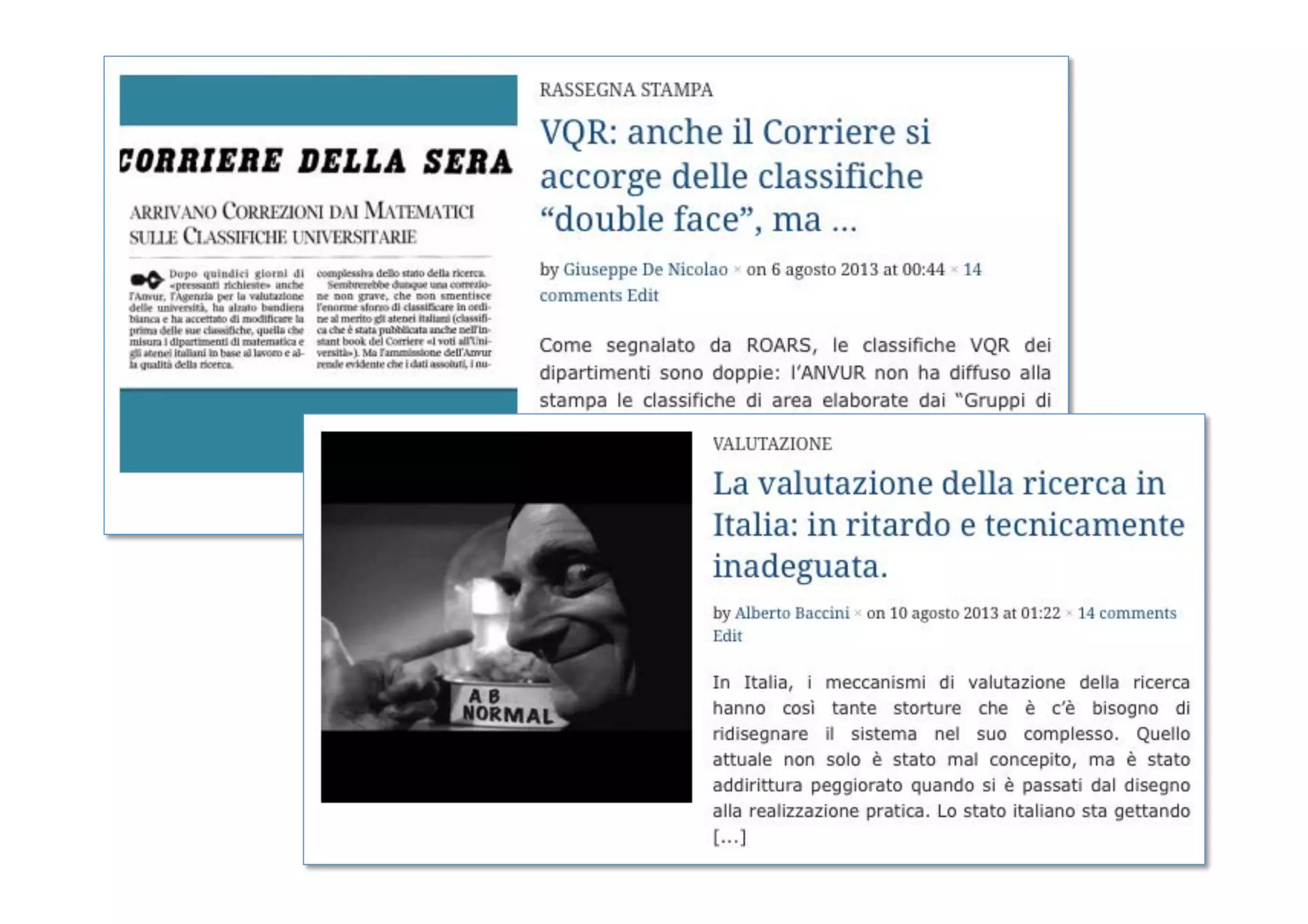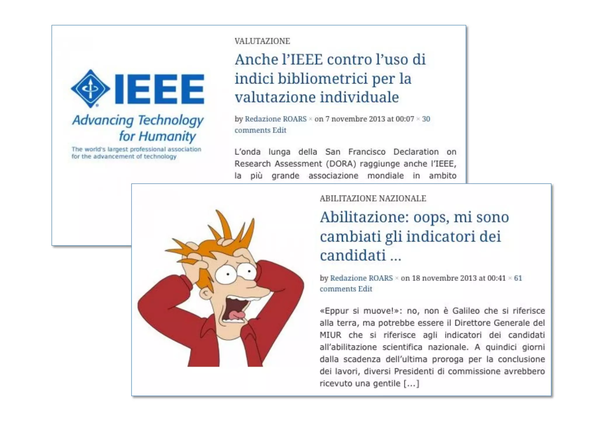 Il documento tratta vari eventi e sviluppi nel campo accademico italiano tra il 2013 e il 2014, evidenziando sfide come il rischio di default per gli atenei e l'implementazione di nuove abilitazioni scientifiche. Viene menzionata l'adozione del 'Declaration on Research Assessment' da parte di San Francisco e i significativi tagli al settore da parte dell'OCSE. Infine, si parla di questioni interne come la 'guerra dei pun organico' e i risultati delle abilitazioni.