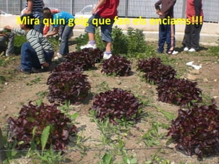 Bloc 1. Quina feinada!!! Han sortit petites plantes que nosaltres no vam plantar. Hem descobert que són males herbes!!! I les hem tret, ja que aquestes plantes agafen les substàncies nutritives de les nostres hortalisses!!! 2. 4.