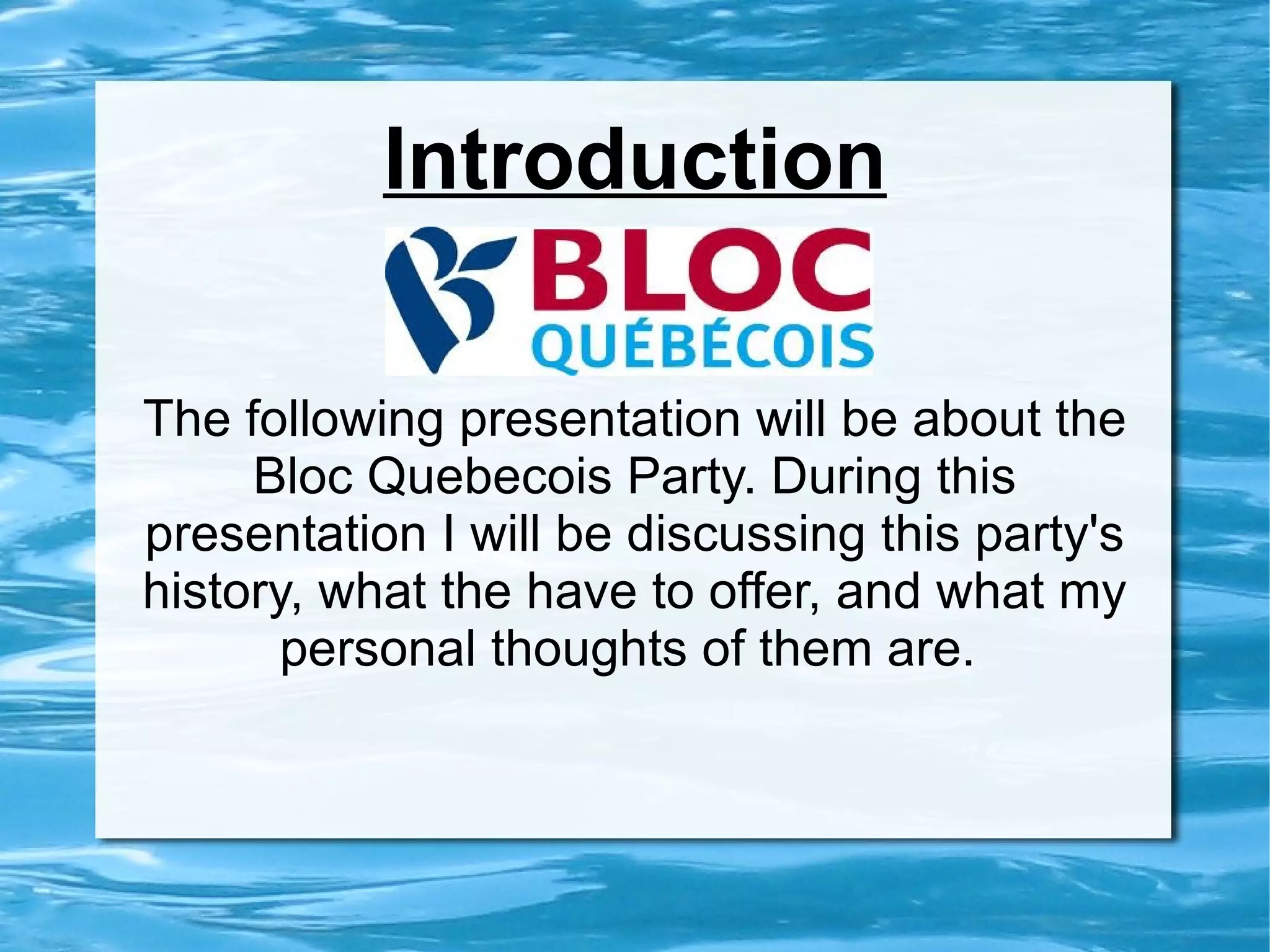The Bloc Quebecois is a political party in Canada that advocates for Quebec sovereignty. It was formed in 1997 by members of parliament from Quebec who were disappointed with the federal government's treatment of the province. The party's core belief is that Quebec should separate from Canada and become an independent country. It focuses on promoting policies that benefit Quebec. The current leader is Gilles Duceppe and the party's headquarters is in Montreal.