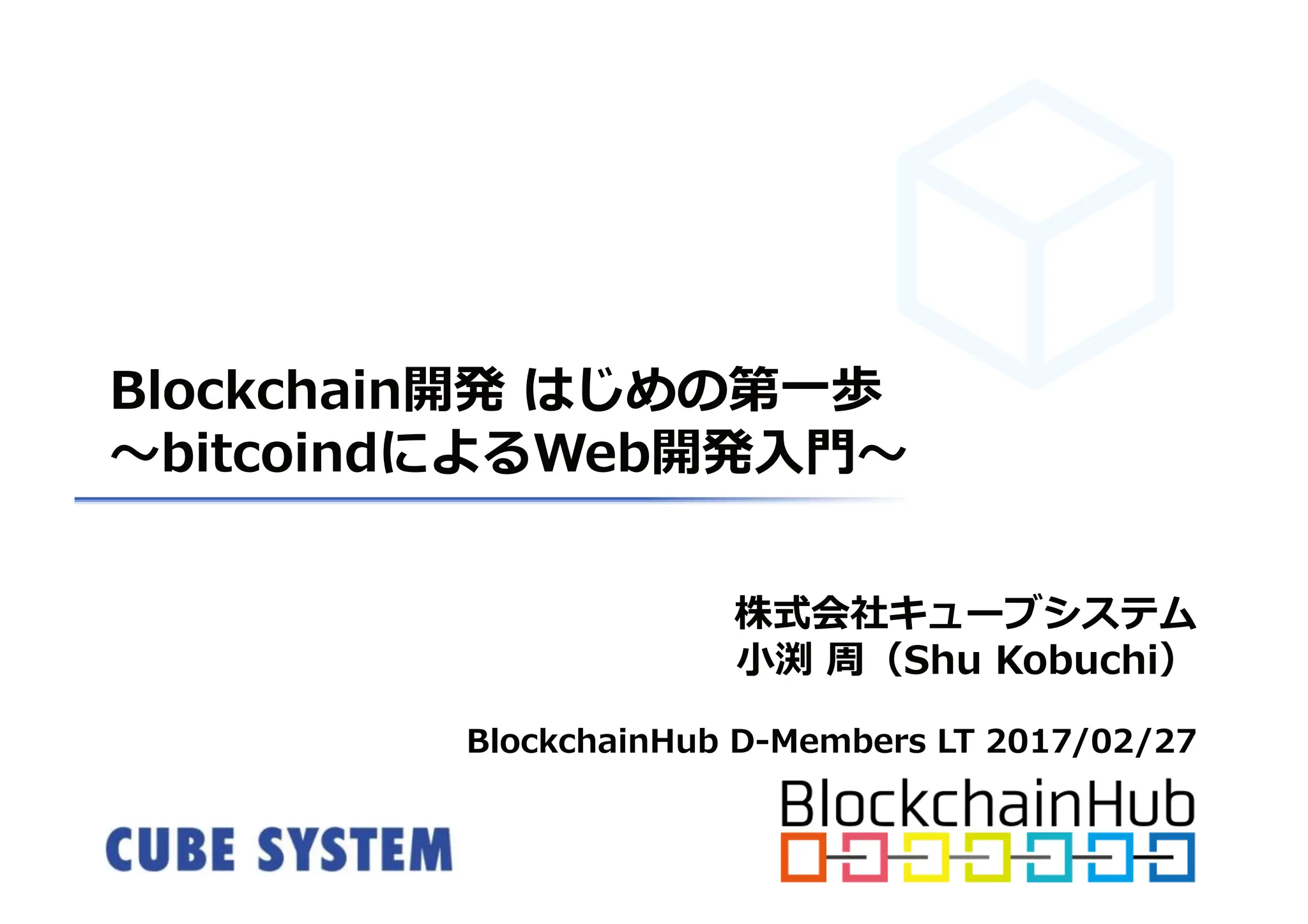 2017年2月27日(月)にBlockchainHub開発者コミュニティ(D-Members)第2回会合のLTにて、ブロックチェーン開発初心者向けに、bitcoindのインストールのコツや初歩的なコマンドの扱い方を話させていただきました。