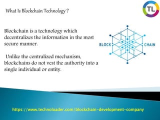 Technoloader is a blockchain development services company that offers various services including smart contracts, exchange platform development, and ICO platform creation. Blockchain technology enables secure, decentralized information management, eliminating reliance on a single authority and providing benefits like reduced data duplication, enhanced security, and cost savings. Interested parties can contact Technoloader via phone, email, or their website.