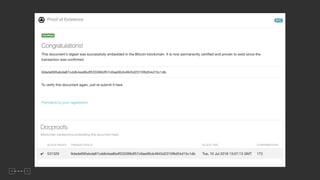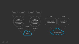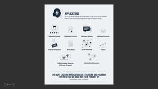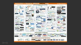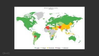 The document discusses blockchain technology, including concepts of private and public blockchains, and their respective use cases. It encompasses case studies, challenges of virtual currencies (VCs), and the importance of regulatory framework for VCs, emphasizing that they should be treated like other financial instruments. Additionally, it presents historical data and trends related to market growth and taxation in the cryptocurrency space.