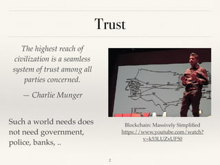 The document discusses the impact, challenges, and risks associated with blockchain technology, emphasizing its potential to improve data integrity, reduce fraud, and reform financial systems while presenting advantages like trustless transactions and automation through smart contracts. However, it also highlights significant challenges such as scalability, privacy limitations, verification and governance issues, and the risks associated with irrevocability and the lack of regulation. The conclusion urges caution and optimism regarding blockchain's future applications, suggesting that substantial technological advancements are still necessary before widespread adoption.